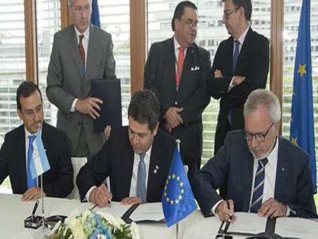 El gobierno de Honduras suscribió acuerdos para endeudamiento por más de cuatro mil millones de lempiras, informó el presidente Juan Hernández; también pidió a naciones europeas que inviertan en el país.