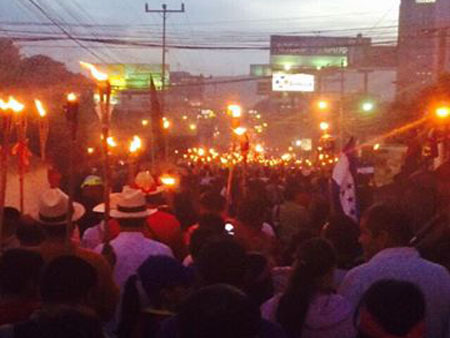 Tegucigalpa. Entre consignas como “detrás de un ejército cualquiera es valiente, ¡Salí de ahí JOH!” se realizó una vez más la Marcha de las Antorchas en la capital de Honduras.