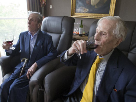Bélgica. Comer con moderación, beber un vaso de buen vino cada día y evitar perseguir a mujeres son los secretos para tener una larga vida, según los belgas Pieter y Paulus Langerock, los gemelos más longevos del mundo.
