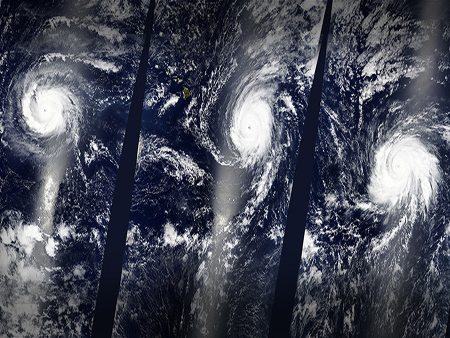 Moscú. La NASA ha captado una imagen de un extraño fenómeno meteorológico: por primera vez desde que existen registros tres huracanes de categoría 4, bautizados como Kilo, Ignacio y Jimena, se han formado de manera simultánea en el océano Pacífico.
