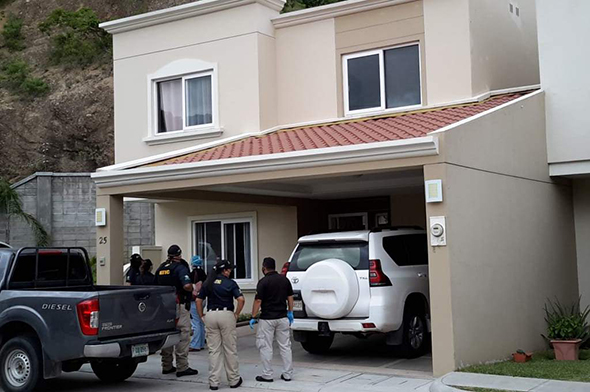 Pero al llegar a la residencial, personal de seguridad privada le negaban el ingreso a los agentes, fiscales y forenses de la ATIC, dependencia del Ministerio Público (MP). Minutos después de conversaciones entre las partes, los guardias permitieron el acceso para que los agentes allanasen la casa de Bográn.
