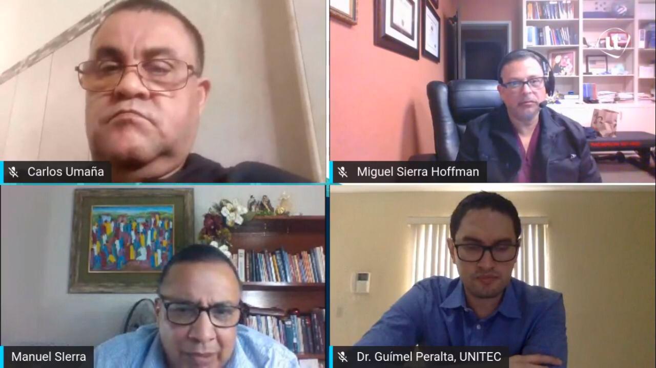 Para clausurar la semana dedicada a la salud integral, se presentó el conversatorio “Visión global en el abordaje de la pandemia COVID-19” con la destacada participación de los doctores: Miguel Sierra Hoffman, Manuel Sierra, Guimel Peralta y Carlos Umaña, quienes compartieron su experiencia profesional obtenida en cada uno de los centros asistenciales donde laboran al frente de batalla.