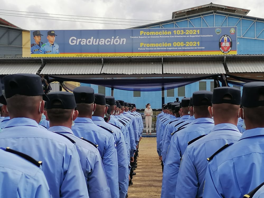 Asimismo, 794 Agentes de Policía recibieron su título de Policía Técnico Superior en Ciencias Policiales con Orientación en Seguridad Comunitaria, quienes serán destruidos en todo el país para reducir los niveles de inseguridad de la población; de igual forma, 40 Policías Técnicos-Logísticos tendrán la responsabilidad de desempeñarse en el área de preparación de alimentos para lo cual fueron formados.