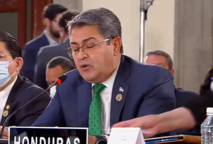En ese contexto, Hernández, comenzó su intervención más dos horas después de comenzado el evento, comenzando con agradecimientos a los órganos de integración presentes, afirmando que este sería el último año que les acompañaría porque finaliza su mandato, ilegal según la Constitución hondureña que prohíbe la reelección.