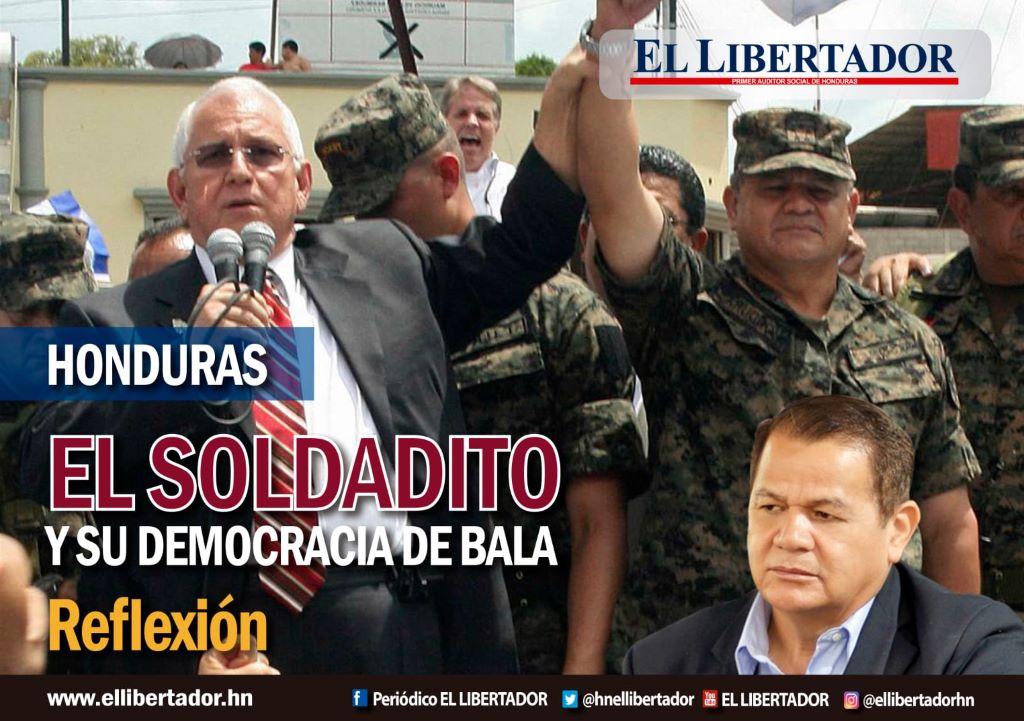 Tegucigalpa. Marchaba el soldadito con fusil al lomo, gestos crudos de infancia dura, fatiga socada y casco ceñido que limita pensar con salud mental, hambriento militar que ataca al pobre, un sin oportunidades que vio la luz en un batallón: fábrica gris que destruye cerebros, sueños y lo peor, la independencia intelectual. Ahí va el soldadito con el pecho hinchado pues defiende la democracia, orgulloso de su labor que no entiende, pero eso le dijeron; recorren por su espaciosa cabeza los fantasmas del Comunismo ¡Buuu! ¡Llegaron los come niños! ¡Chávez anda espantando! ¡Buuu! En su imaginario, las balas que escucha en Casamata, es el Comandante “Che” Guevara que entró a la ciudad. ¡Rápido soldadito! ¡Corré soldadito! Hay que eliminar al enemigo, aunque sea solo un estudiante, aunque sea un ciudadano que pide cambio, eso es malo soldadito. ¡Boom! mató al sedicioso. Ya puede descansar el militar, afuera botas rojas, la democracia ganó.