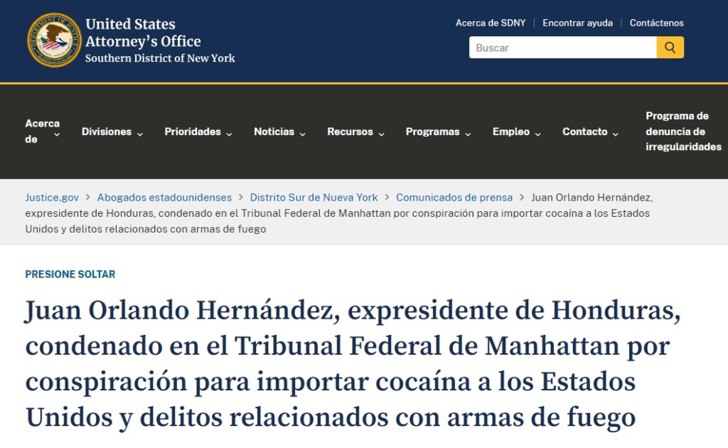 De forma oficial la Fiscalía del Distrito Sur de New York, ha compartido el resumen del caso contra Juan Hernández, quien esta tarde ha sido encontrado culpable por narcotráfico, según el veredicto del jurado que participó en su juicio; EL LIBERTADOR, comparte con la sociedad hondureña y el mundo, la traducción del documento.