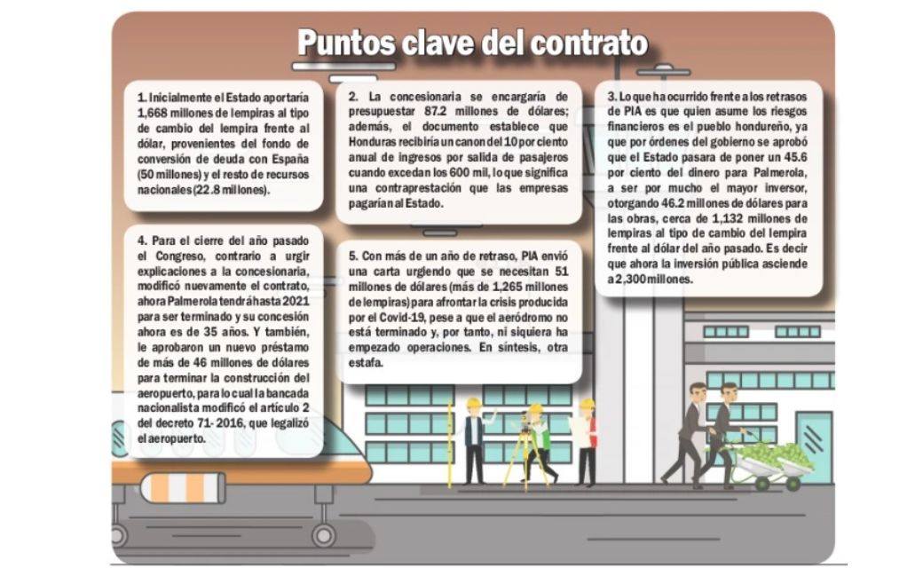 La construcción del Aeropuerto Palmerola, se montó gracias a fondos de Institutos de Previsión, al menos 2,300 millones pasaron a la Concesionaria para ejecutar la obra bajo control de Grupo EMCO, empresa de Lenir Pérez que, a la fecha no ha retribuido en nada la inversión de hondureños y que, a juicio del abogado penalista, Omar Menjivar, es un total abuso.