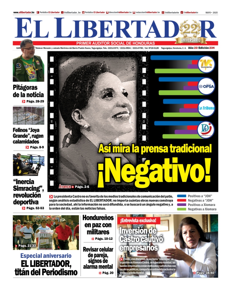Tegucigalpa. Periódico EL LIBERTADOR, “Primer Auditor Social de Honduras”, informa a la sociedad hondureña y el mundo que, su más reciente edición mensual, la tercera de 2025 en versión PDF, ya está en línea para su lectura.