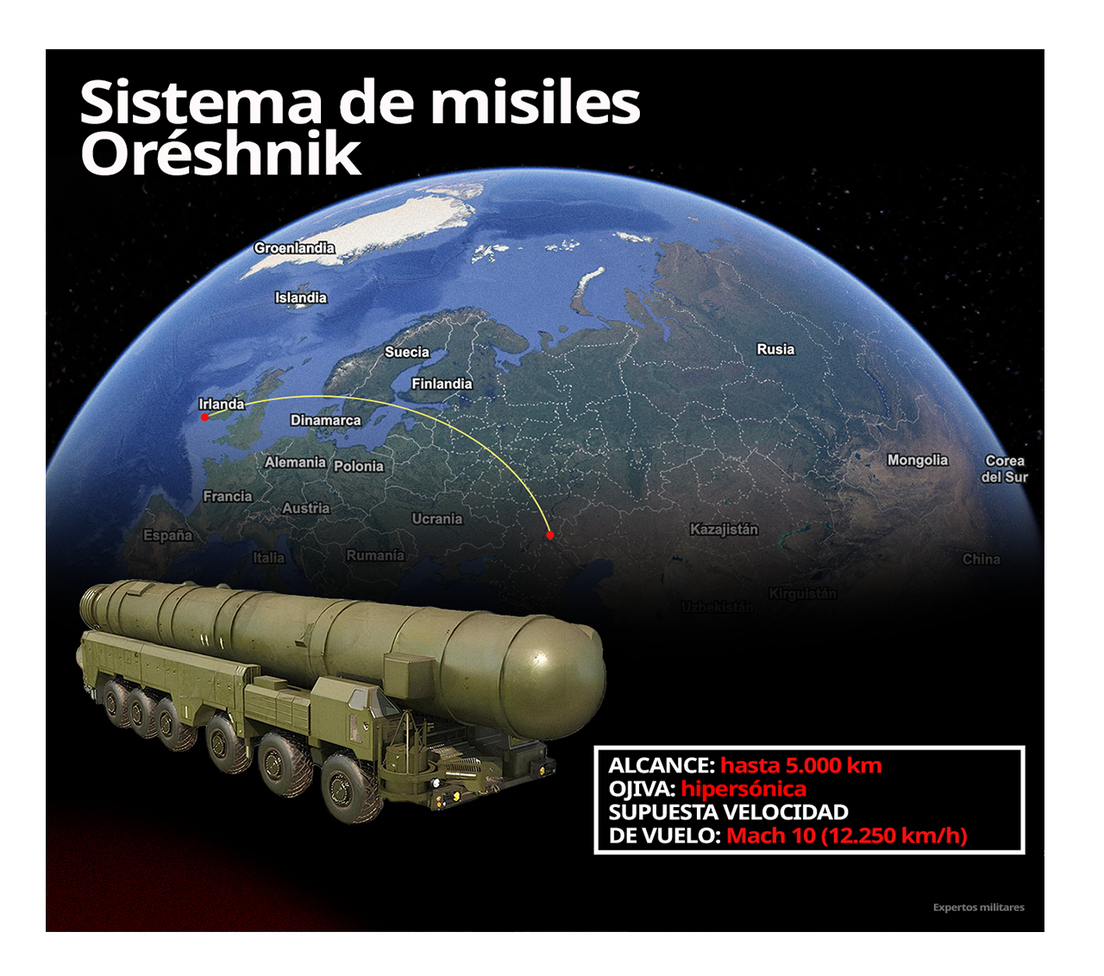 A las pocas horas, el presidente ruso, Vladímir Putin, explicó que se trató del nuevo misil balístico Oréshnik.