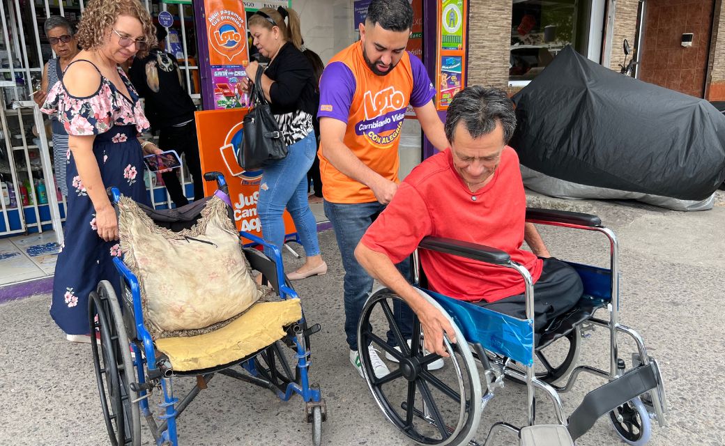 Con determinación, Don Héctor recorrió calles y tocó puertas buscando apoyo para obtener una nueva silla de ruedas, ya que, la que tenía estaba en terribles condiciones. Fue a través de la gestión solidaria de doña Nazareth, propietaria de la Farmacia Jesús de Nazaret y punto de venta Loto, quien conoció su historia y decidió actuar, enviando la solicitud a Loto.