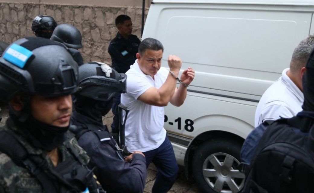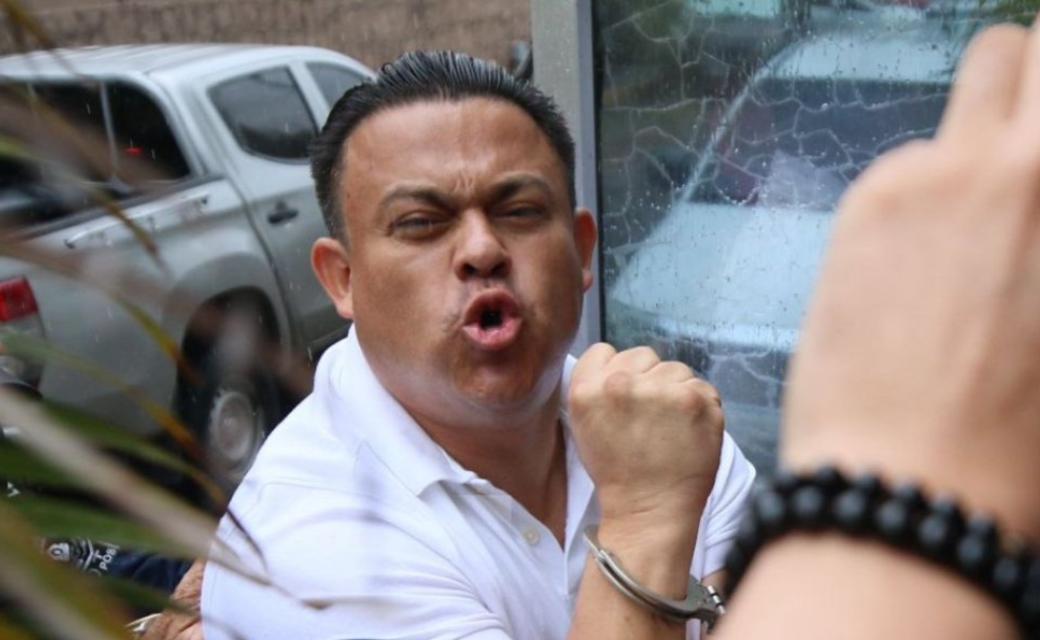 Marquez, una de las voces de la oposición fanatizada y virulenta, llegó vistiendo una camisa blanca, jeans tipo vaquero, esposado y muy alterado que delataba nerviosismo, de pronto, apretaba las mandíbulas con ira y levantaba sus puños, repitiendo la consigna: “Viva Honduras”.