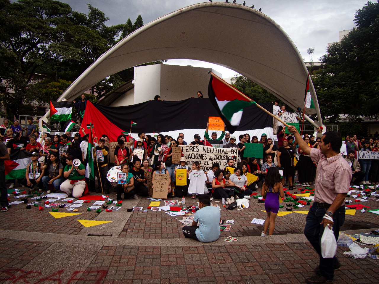 Los hondureños –que siempre han apoyado causas justas–, se posicionaron en la concha acústica del parque central de la capital, justo en frente de la estatua de Francisco Morazán, en el marco del 233.° aniversario de su natalicio y, desde ahí, alzaron la voz por Palestina.