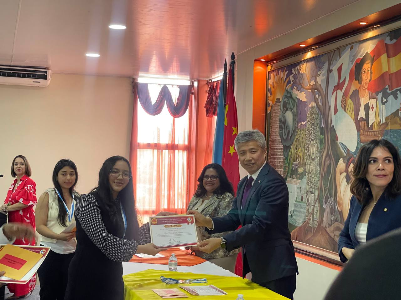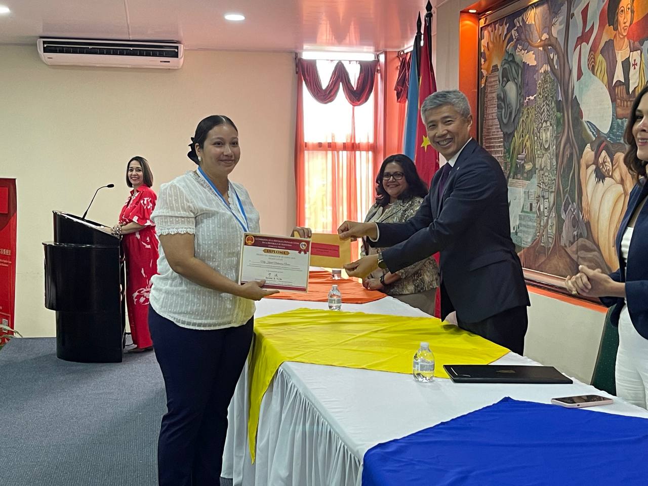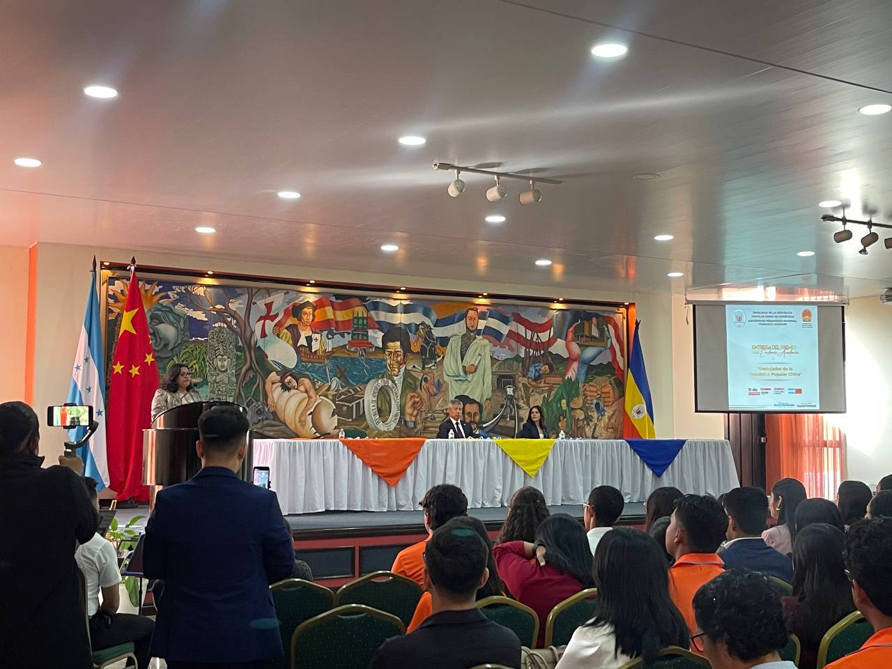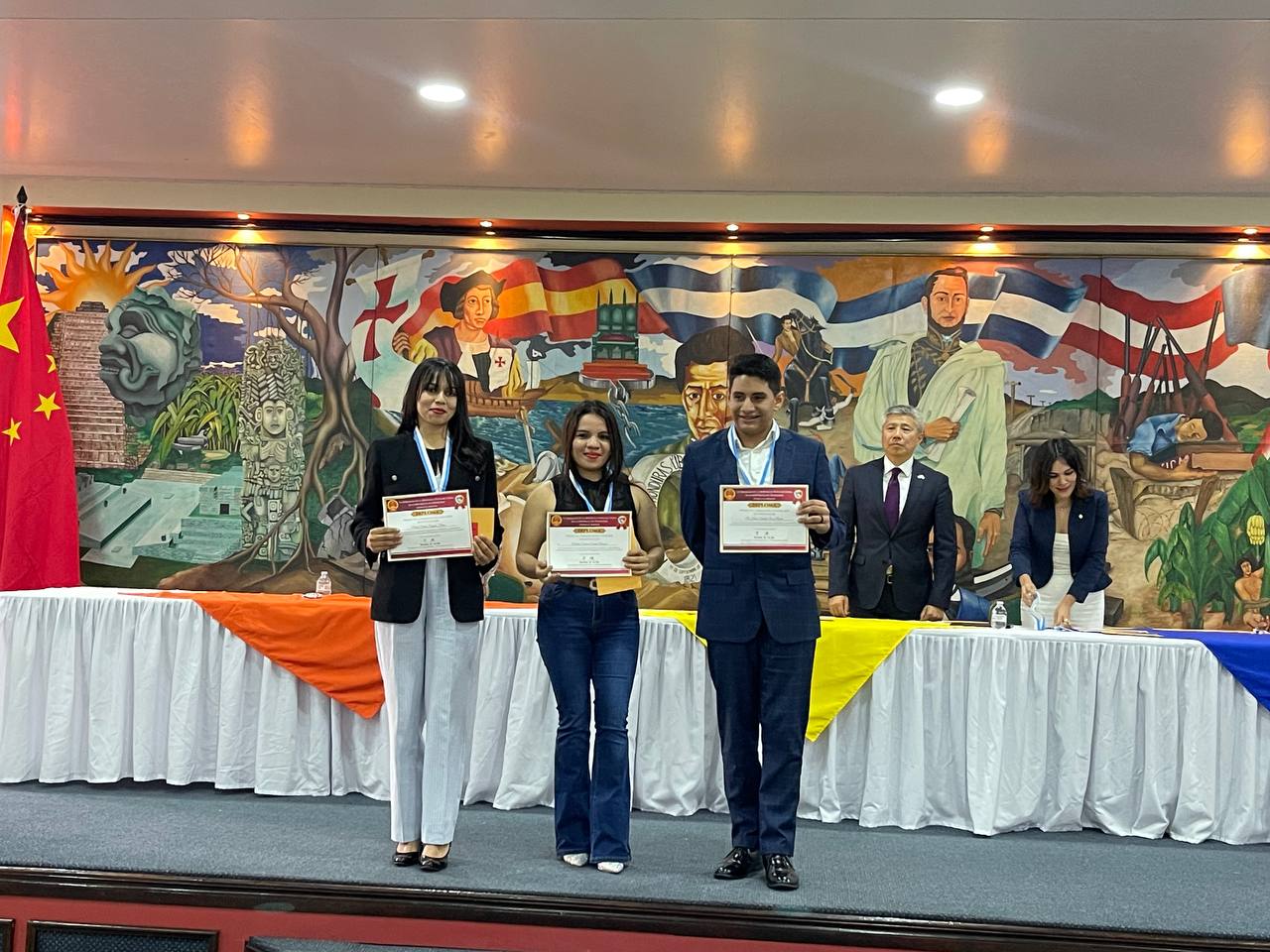 Con felicitaciones y música, la embajada China entregó a 50 universitarios hondureños el reconocimiento “Embajador de la República Popular China” que premia la excelencia académica e incentiva la búsqueda permanente del saber en los educandos.