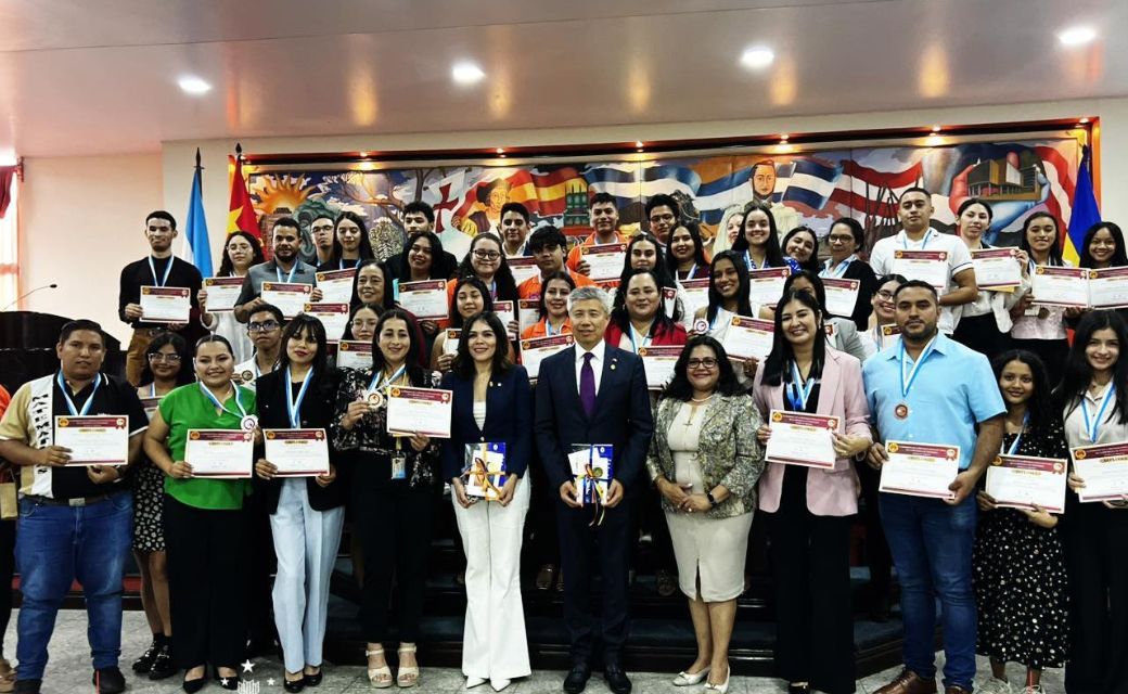 Con felicitaciones y música, la embajada China entregó a 50 universitarios hondureños el reconocimiento “Embajador de la República Popular China” que premia la excelencia académica e incentiva la búsqueda permanente del saber en los educandos.