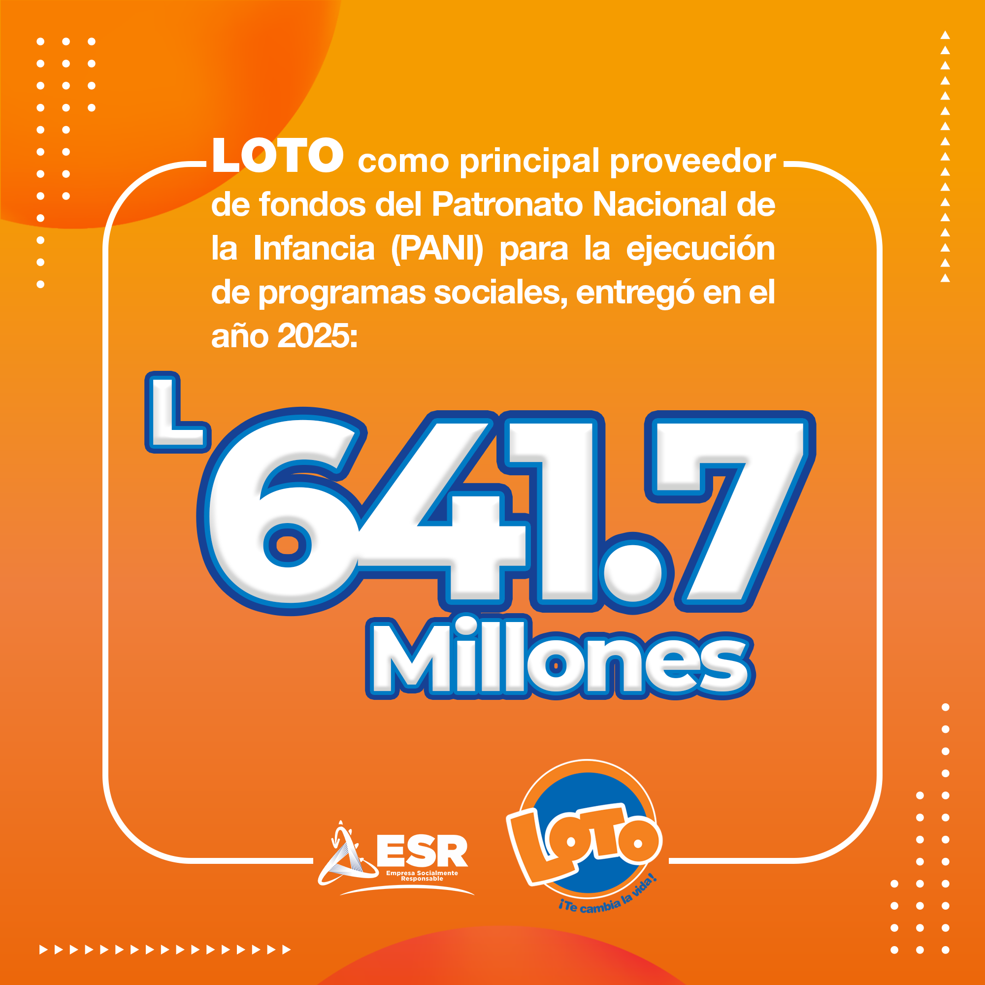 La empresa líder en loterías electrónicas, Loto, como principal proveedor de fondos del Patronato Nacional de la Infancia (PANI), destacó en 2025 por su visión que “cambia vidas con alegría”, aportando 641.7 millones de lempiras para el desarrollo de los hondureños.