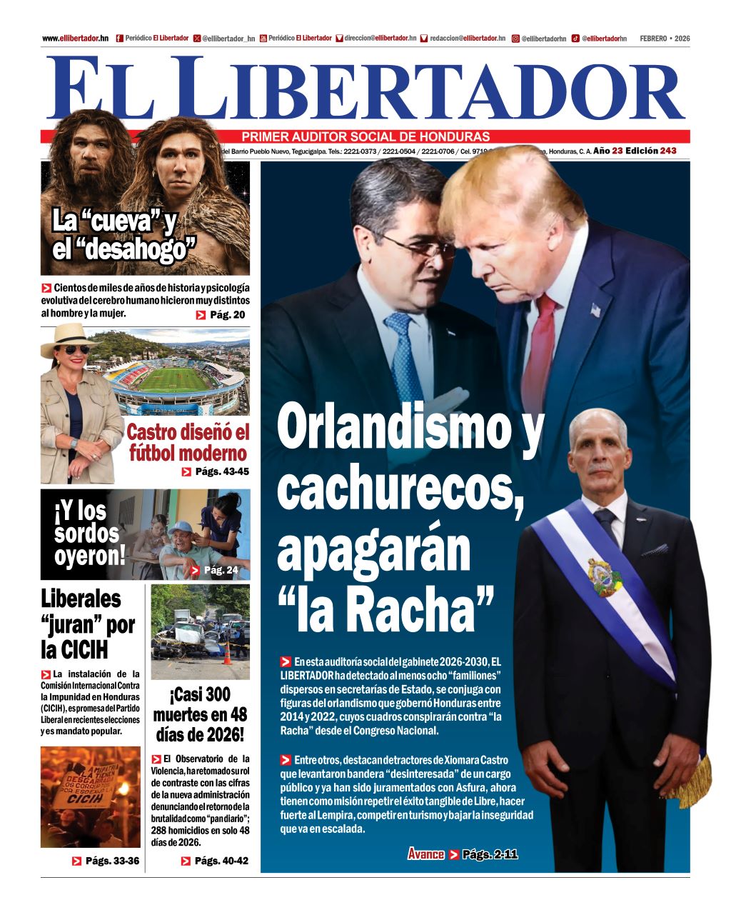 Tegucigalpa. Periódico EL LIBERTADOR, “Primer Auditor Social de Honduras”, informa a la sociedad hondureña y el mundo que, su más reciente edición mensual, la segunda de 2026 en versión PDF, ya está en línea para su lectura.