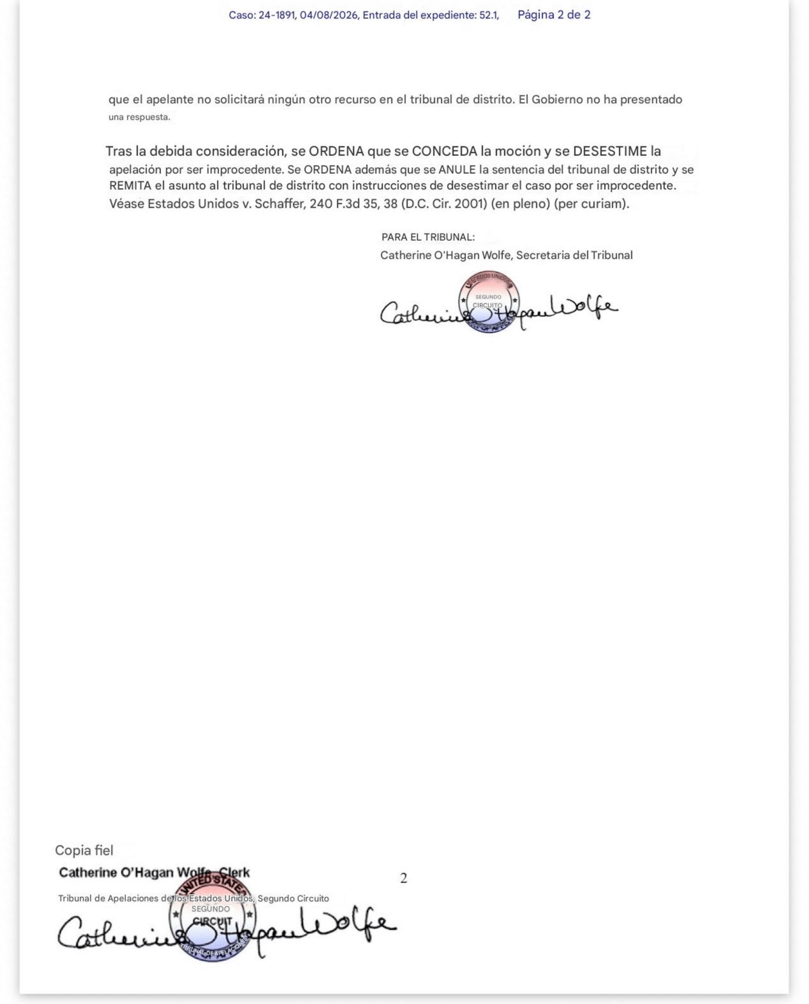 Sin embargo, el fallo sí tiene un efecto jurídico relevante que ha sido minimizado en el debate público: la sentencia es anulada y el caso queda formalmente desestimado, lo que implica que ya no existe una condena ejecutable vigente en tribunales estadounidenses.